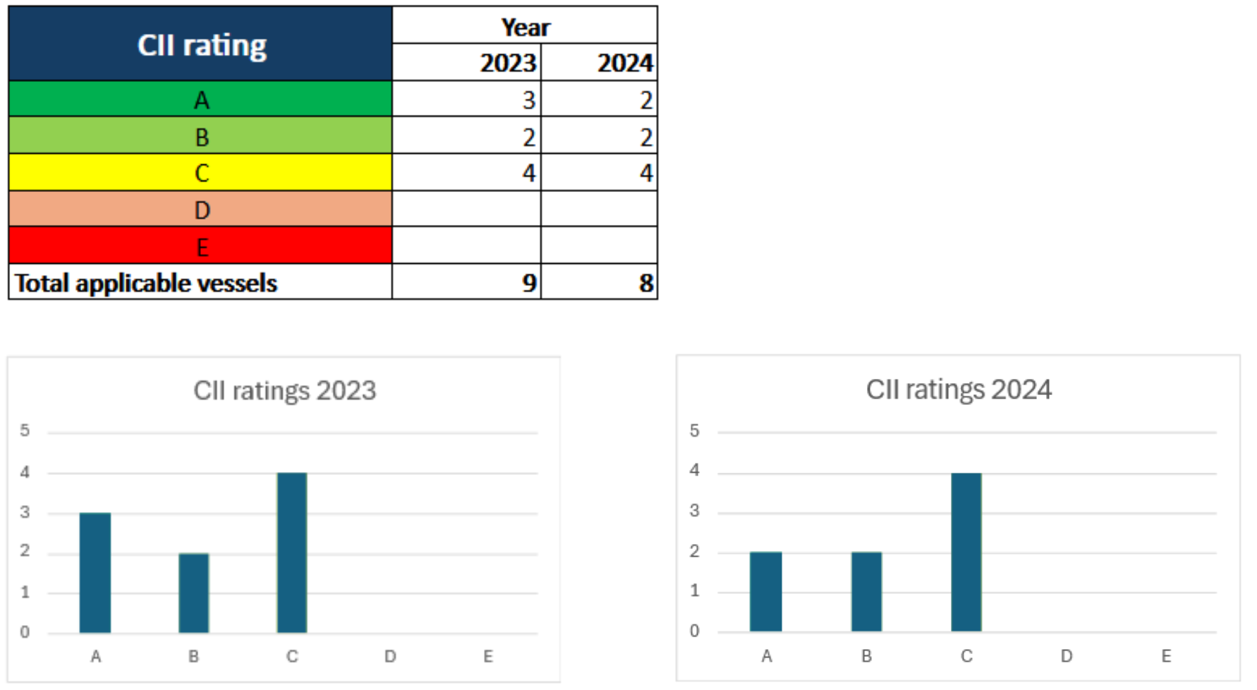 The year was also marked by many dockings across our fleet, ensuring continued safety and operational excellence. Unfortunately, we had to report one Category 3 incident (mooring safety), which we take very seriously and from which we have learned valuable lessons.
